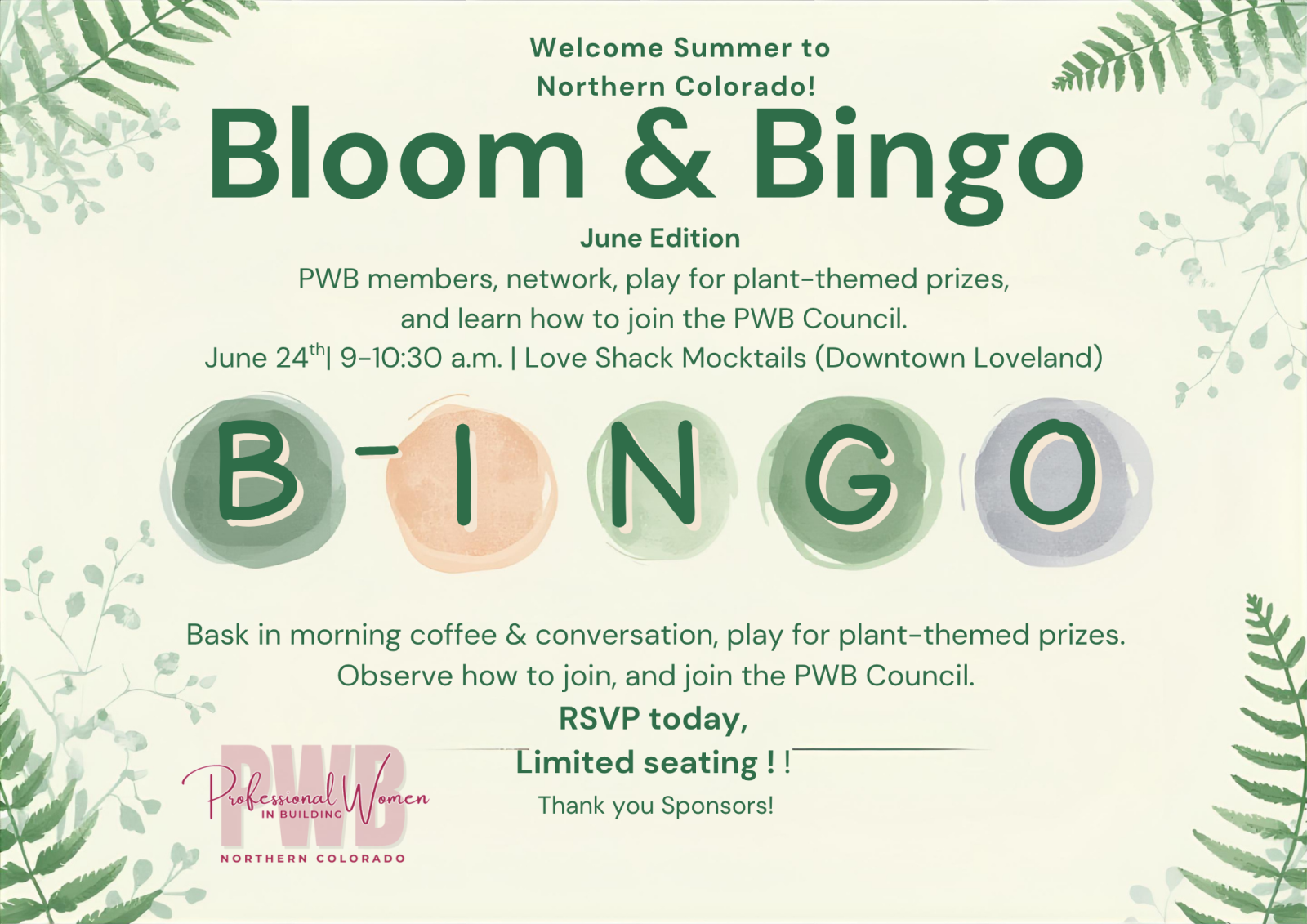 Get ready for B-I-N-G-O with a twist! The PWB Council invites you to Bloom & Bingo – June Edition, a fun, plant-themed morning event where networking meets friendly competition.
